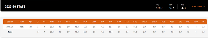 实际上这场比赛后,杨瀚森在G联赛场均29.4分钟,拿到19.3分9.7篮板3.3助攻0.9抢断1.2盖帽,命中率66.7%,三分命中率36.4%,这个数据真的不差。